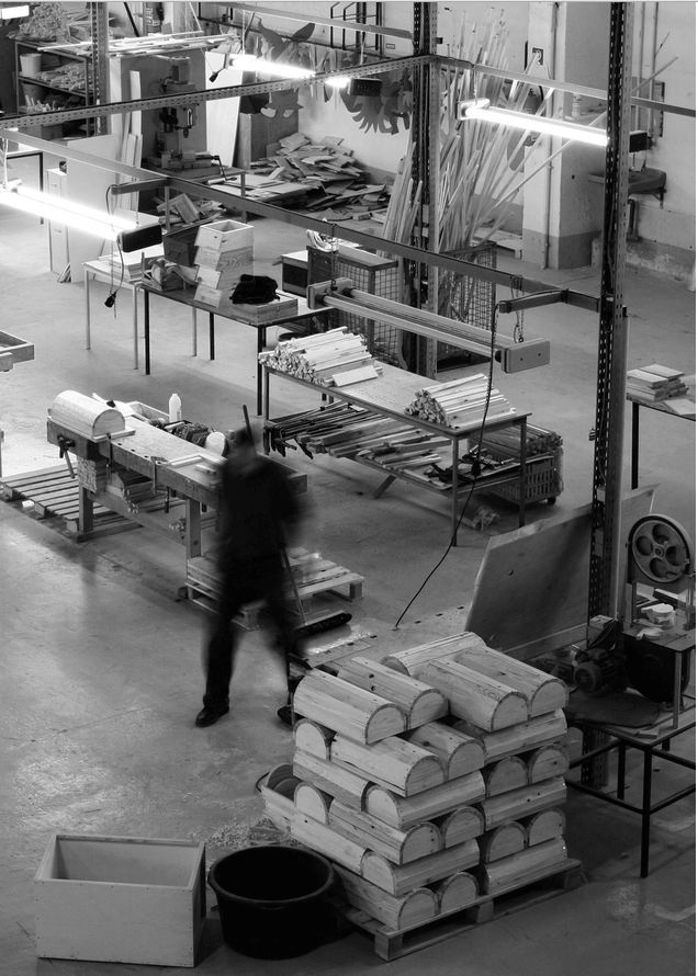 Statt Tüten kleben müssen Knackis heutzutage in landeseigenen Tischlereien, Schneidereien, Schlossereien oder Buchbindereien arbeiten. Die Werkstätten in den Justizvollzugsanstalten des Landes Brandenburg nennen sich meisterhaft-Werkstätten. Die Häftlinge verdienen 12 Euro am Tag, fünf Tage in der Woche.